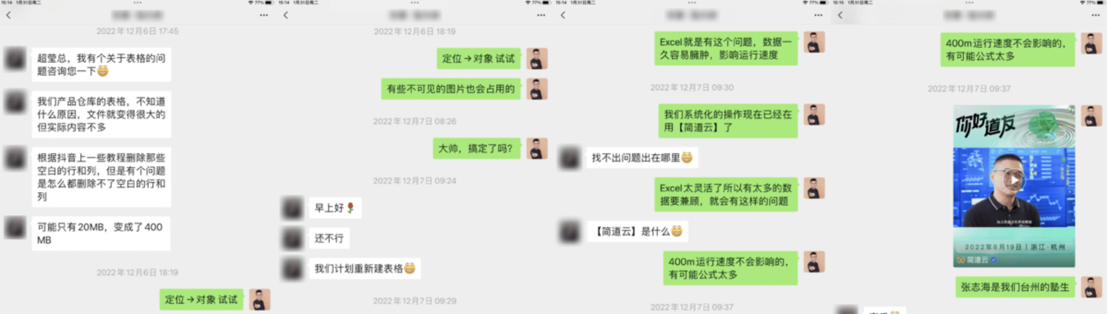 2008到2016年间,他是饱受争议的“番茄炒蛋”之父,在全社会加速推进数字化的今天,他正在以“数智化实践推广人”的身份引导其他中小企业进行转型。许多老板还习惯用Excel进行管理,叶超莹会耐心地教他们怎么让Excel占用更小的空间,提高运行速度,也会向他们推荐尝试用简道云自己搭建应用。