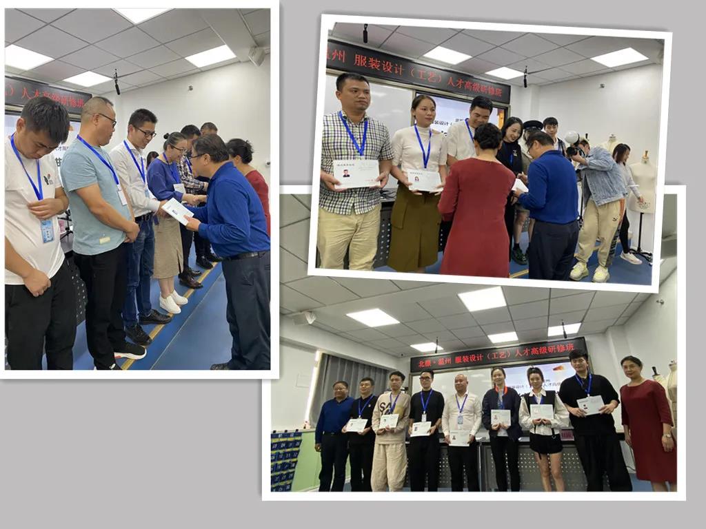 昨日下午,由温州市人力资源和社会保障局主办,温州市服装商会和北京服装学院继续教育学院承办的“温州服装设计(工艺)高技能人才”高级研修班在北服继续教育学院教学楼顺利结业,来自温州服装企业及温州技师院校的50名设计师、版师在北京服装学院开展的为期4天女西专题培训课程也正式画上圆满句号。