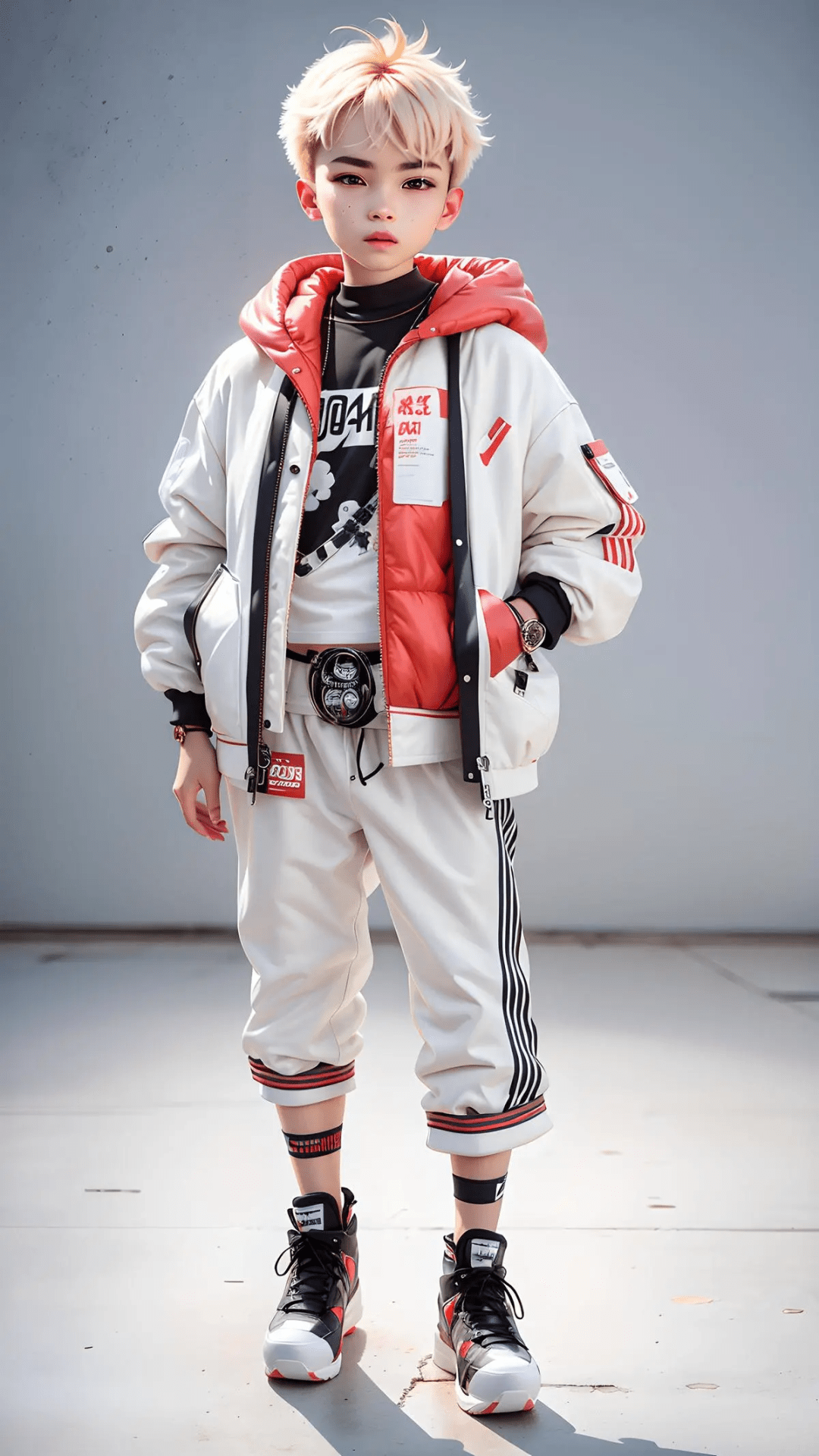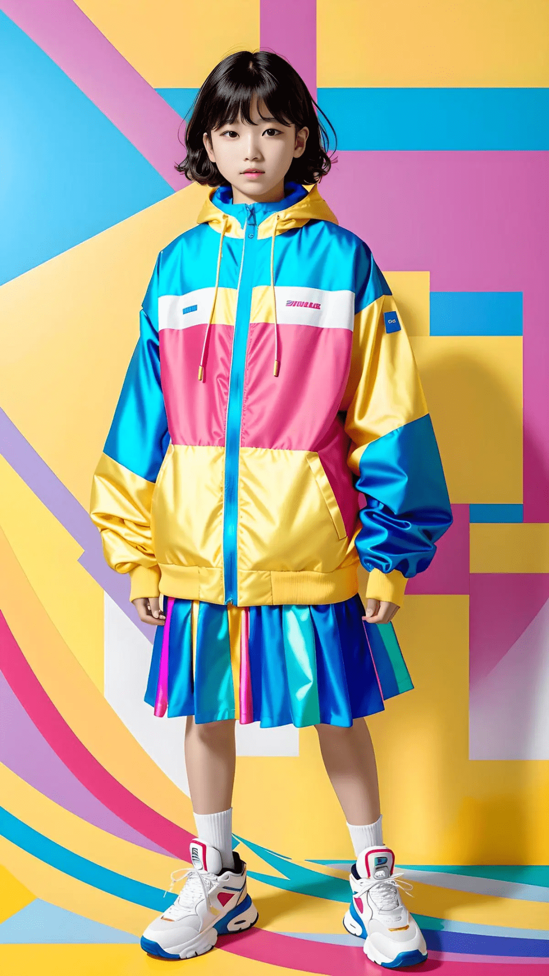 作品介绍:少年服装非常适合那些追求时尚、个性与张扬的年轻人。整个搭配的颜色非常鲜艳,共同构成了一种充满活力的视觉效果。无论是派对还是日常生活,这套青少年服装都能让你成为最显眼的焦点。